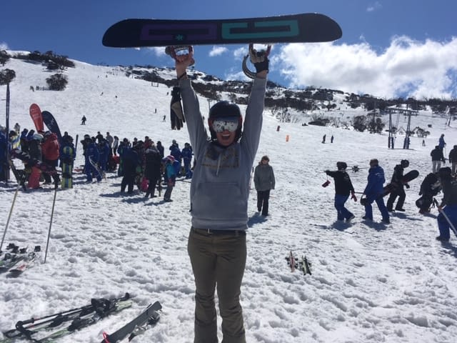 Bonnie says there is so many things to do in the Snowy Mountains. “The best day off is catching the first bus to Perisher and the last bus back, a full day on the hill! But there is also walks in the National Park, dress up nights, kayaking on the lake on a calm day, barefoot bowls in Jindabyne, movie nights and BBQs on the river. My best day on the hill would have to be one day when it absolutely bucketed snow and everyone was super pumped working that morning, even the guests were stoked. Riding through knee deep powder stashes and getting buried in snow, so much happiness that day! Another day, the Ski Rider staff had a 80’s retro dress up day and rode the mountain as a group stopping at little cafes and pubs around Perisher. Such an awesome experience to ride with a massive group of friends as it rarely happened.” Bonnie says her favourite snow accessory is paw paw ointment. “I never leave home without it!”